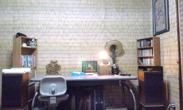 ぼくの机。中央にジャルー写真{ジャルーの孫、シャーナが持っていたのをジャルーがシャーナに断らず勝手にくれた